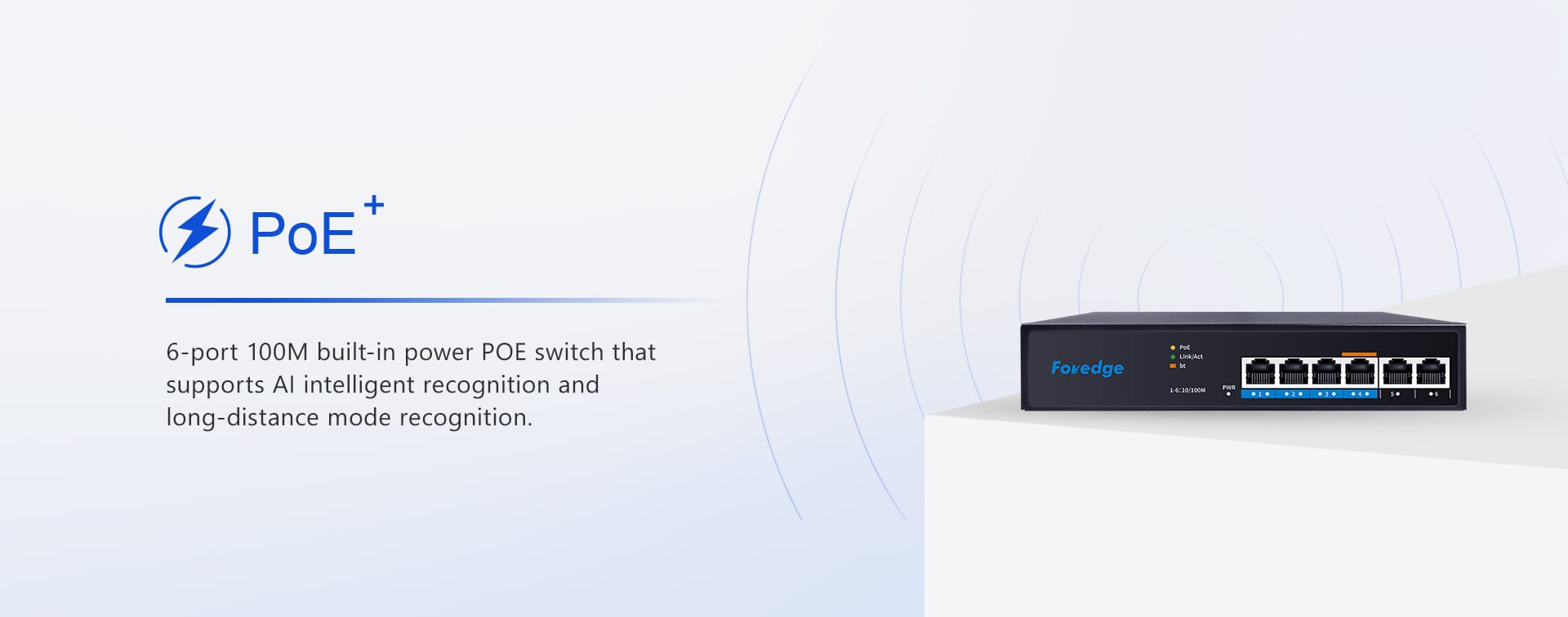 AI806M Switch 100 mbps AI PoE de 6 puertos