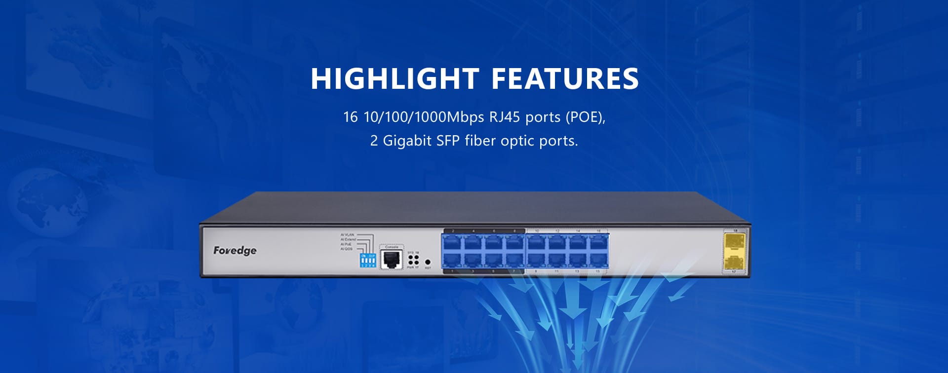 | Networking Interface | ● 16*10/100/1000Mbps RJ45 ports(POE) |